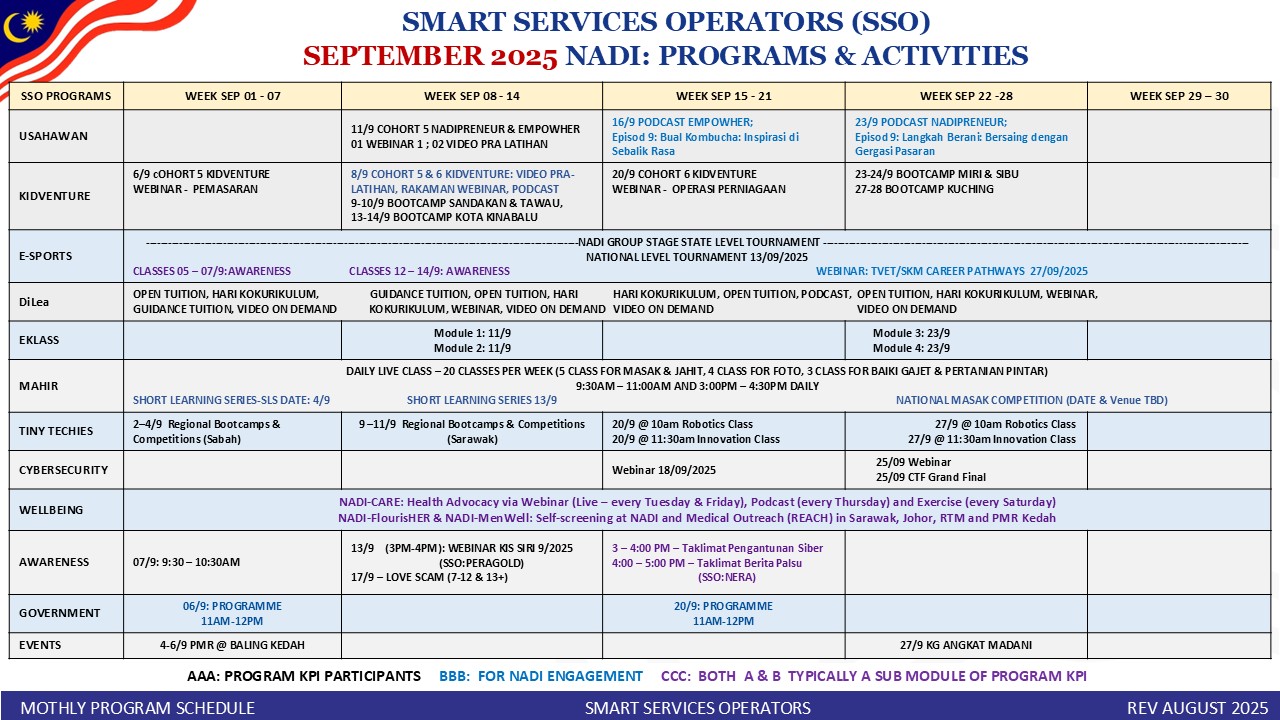 Tarikh : 16/08/2025 Masa : 3.00pm – 4.00pm Tempat : NADI Kampung Kuala Kerik Peserta : 6 peserta TUJUANWebinar ini bertujuan memberi kesedaran kepada peserta mengenai isu buli siber yang semakin membimbangkan dalam kalangan masyarakat, khususnya golongan muda. Program ini […]